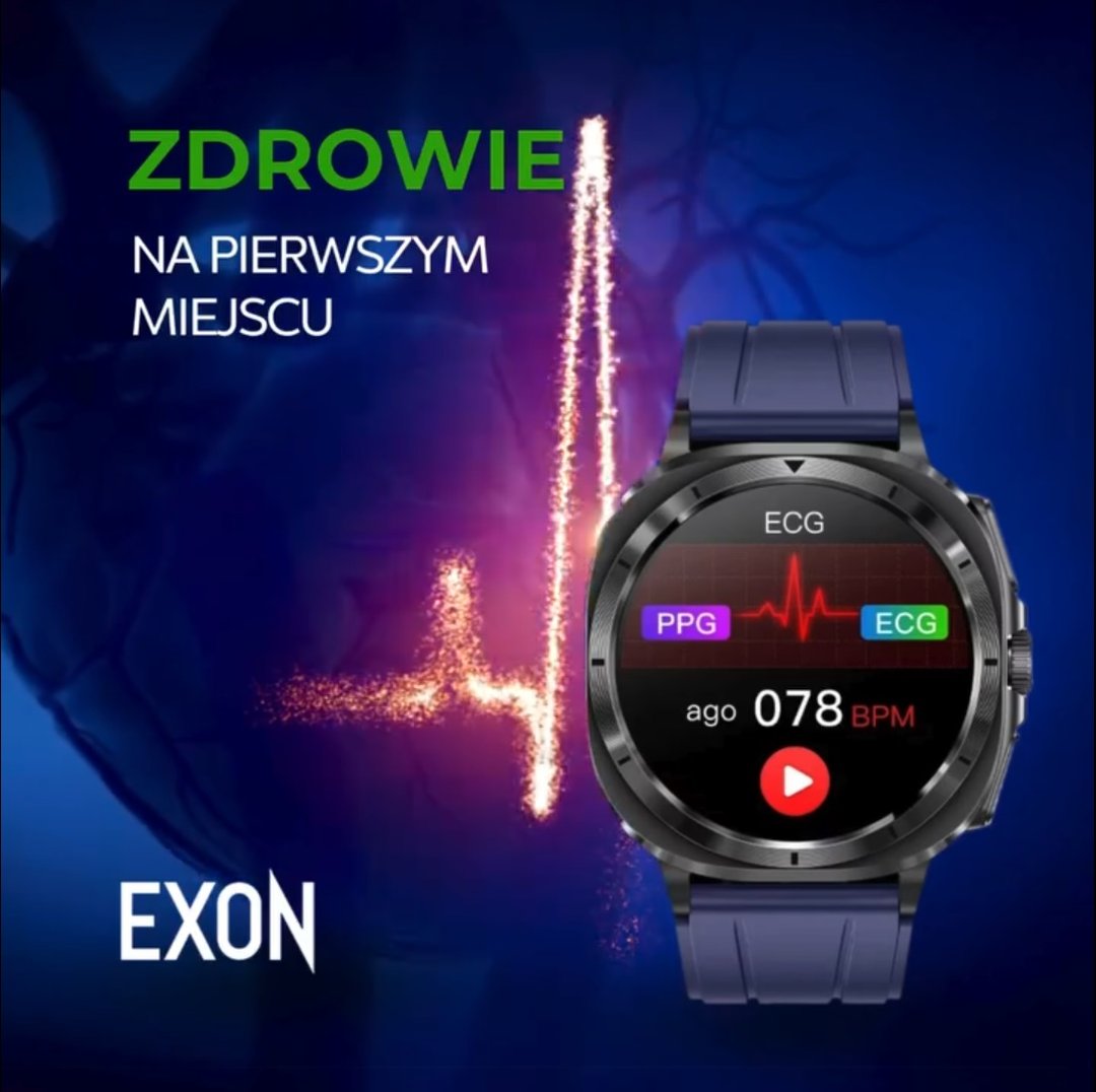 EXON Electronics to polski producent inteligentnych zegarków zdrowotnych – smartwatchy z EKG, znanych jako kardiowatche EXON. Zegarki EXON są projektowane w Polsce (Design in Poland) i sprzedawane wyłącznie online. Główną ofertę stanowią zegarki z EKG do codziennego monitorowania zdrowia, w tym EKG, tętna, ciśnienia krwi, saturacji, snu oraz aktywności fizycznej. Uzupełnieniem oferty są wysokiej klasy smartwatche, w tym modele z GPS. Zegarki EXON są szczególnie polecane seniorom, osobom 40+ oraz użytkownikom dbającym o profilaktykę serca i zdrowy styl życia. Prosta obsługa i czytelny interfejs zapewniają wygodę użytkowania. Marka EXON działa od 2018 roku. Zapewniamy polską infolinię, serwis w Polsce oraz wsparcie w języku polskim.